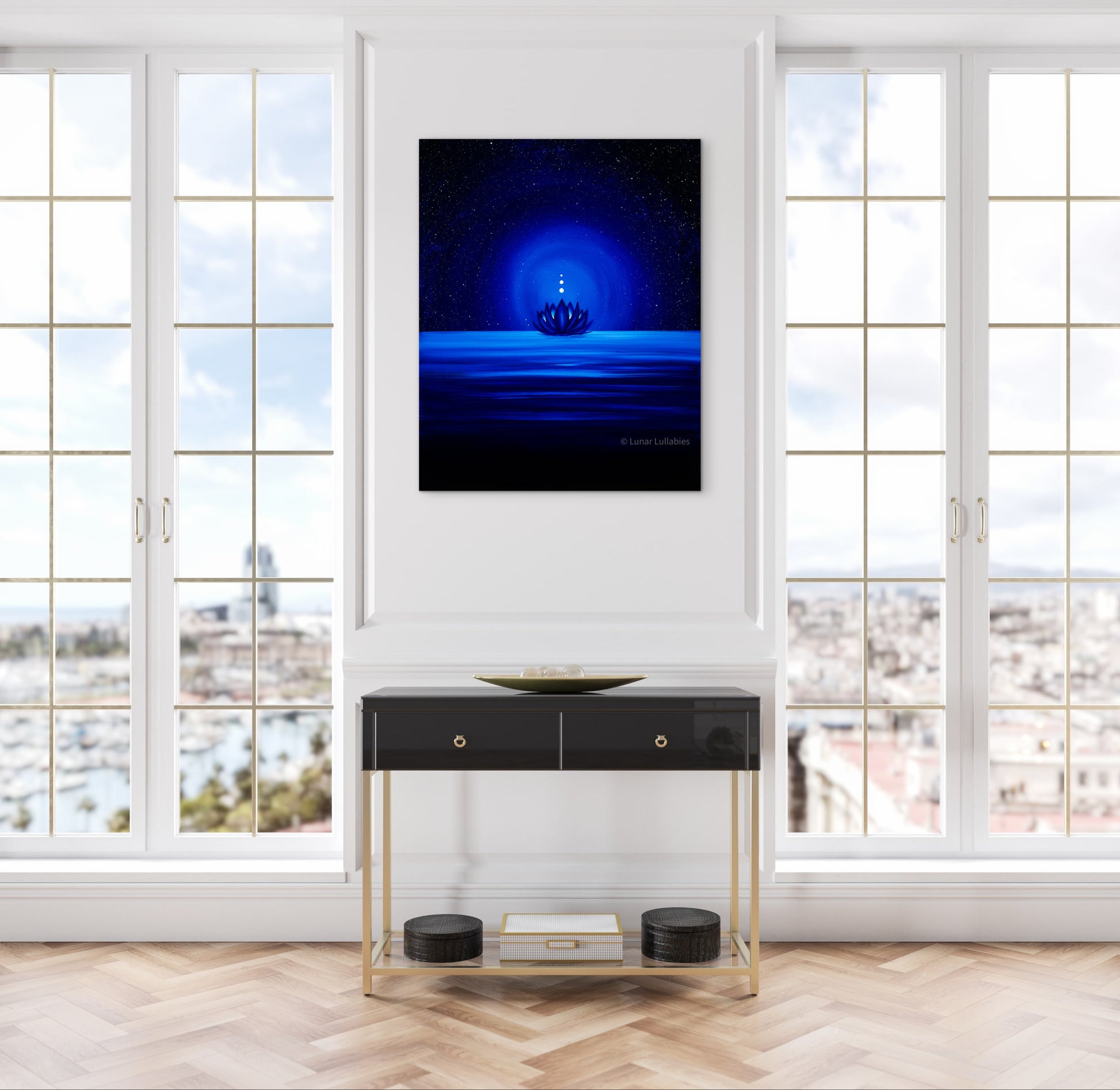 - Construction: Stretched on solid wood stretcher bars to prevent warping over time