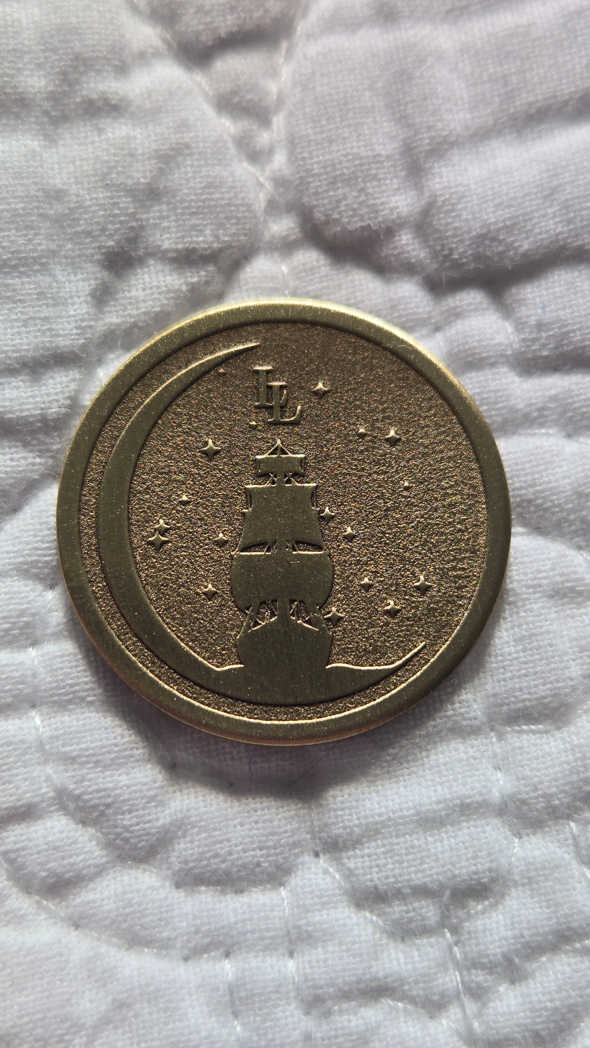 The Moonrunner is a collectible brass coin that’s perfect for gifting, displaying, or carrying as a pocket talisman.